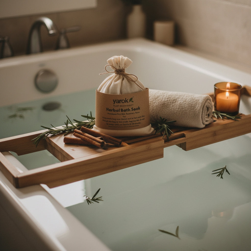 An aromatic herbal soak designed to calm the senses and restore the body. Each reusable jute pouch is filled with a soothing blend of mineral-rich salts and therapeutic herbs that steep gently in warm water, creating a spa-like bathing experience.