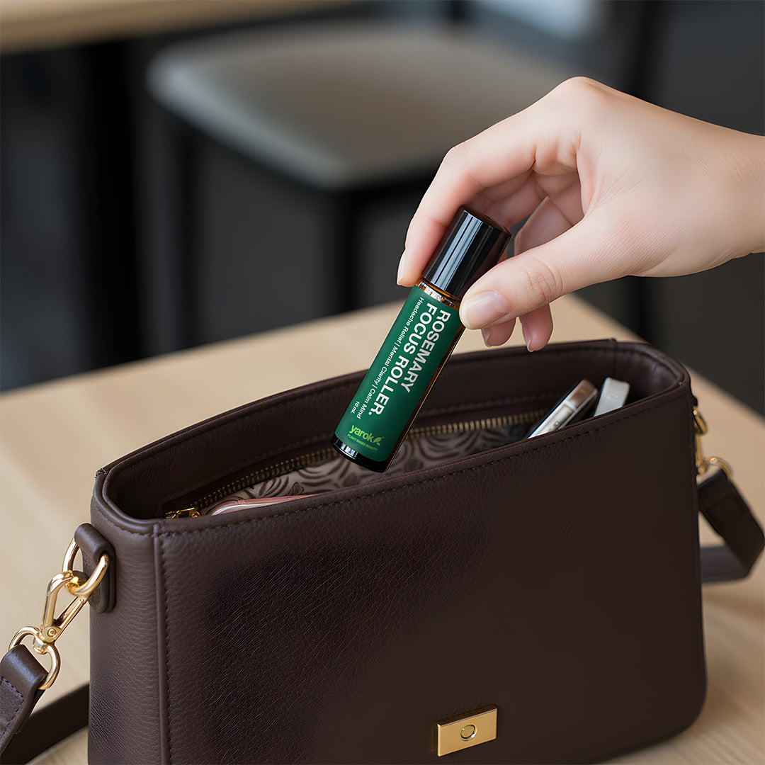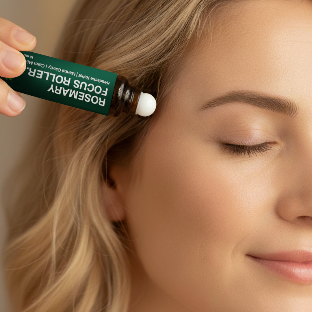 Elevate your daily wellness ritual with Rosemary Focus Roller, a 10 ml essential oil roller designed for headache relief, mental clarity, and sensory calm. The blend of peppermint, frankincense, and rosemary provides aromatherapy benefits wherever you need them most – temples, back of neck, under nose, or bottoms of feet.